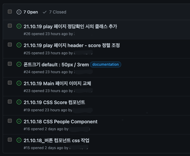 ์ด์ ๋๋์๋ ์ญํ ์ ๋ฐํ์ผ๋ก ๊ฐ์ ํ์๊ฐ ์ ๋ CSS๋ฅผ ๊ตฌํํ๊ณ , 30๋ถ์ ๋ ๋ค๊ฐ์ด ์ฝ๋ ๋ฆฌ๋ทฐ ํ merge ํ์ต๋๋ค.